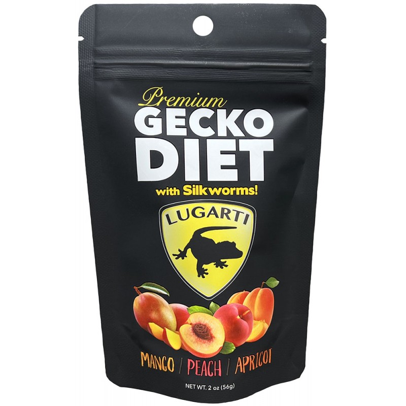 Lugarti’s Premium Gecko Diet is a complete and balanced diet for all fruit-eating geckos. It’s made with the highest quality, human grade ingredients, including Whole Dried Fruits, Whey Protein Isolate, Whole Dried Egg, Kelp, Bee Pollen, Vitamins, Minerals, Probiotics, and Silkworms!